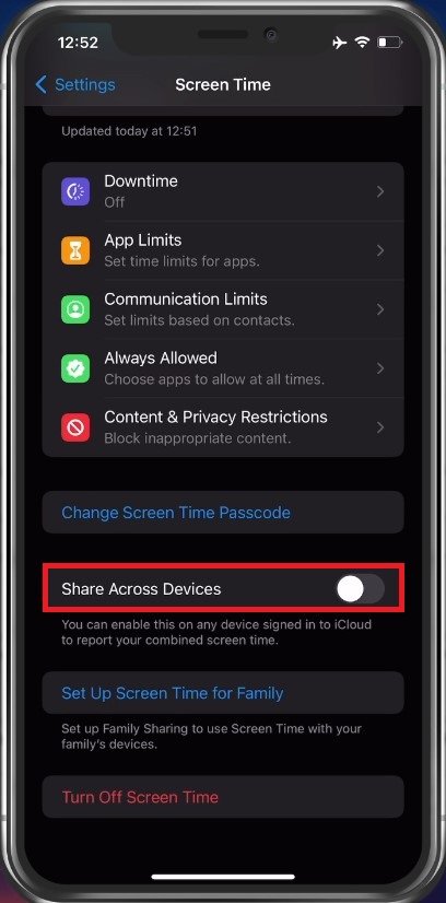 Tempo di utilizzo > Condividi su più dispositivi (disabilitato)