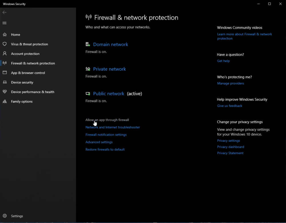 Windows Defender Firewall > Consenti un'app tramite Firewall