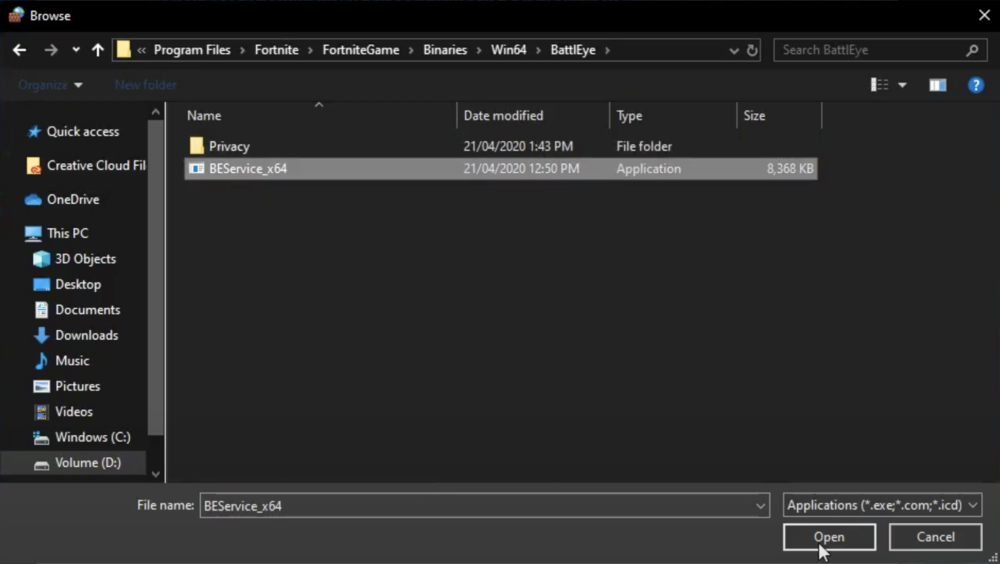 Programmi > Fortnite > FortniteGame > File binari > Win64 > BattlEye