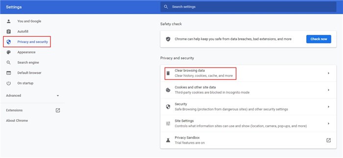Passaggio 2. Tocca Privacy e sicurezza > Cancella dati di navigazione.