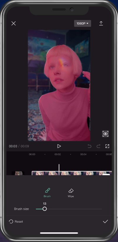 SelezionareRitaglio personalizzato. Modifica la dimensione del pennello per ritagliare porzioni più grandi o più piccole del video.