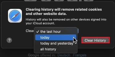 Si aprirà una nuova finestra che ti chiederà di scegliere un intervallo di tempo della cronologia di Safari che desideri eliminare. Per eliminare la cronologia, seleziona tutta la cronologia e fai clic suCancella cronologia.
