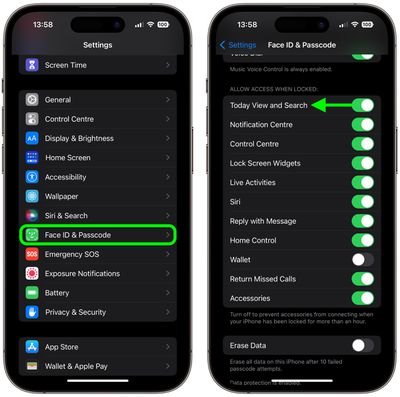 - Scorri verso il basso e in "Consenti accesso se bloccato", disattiva l'interruttore accanto aOggi Visualizza e cerca.