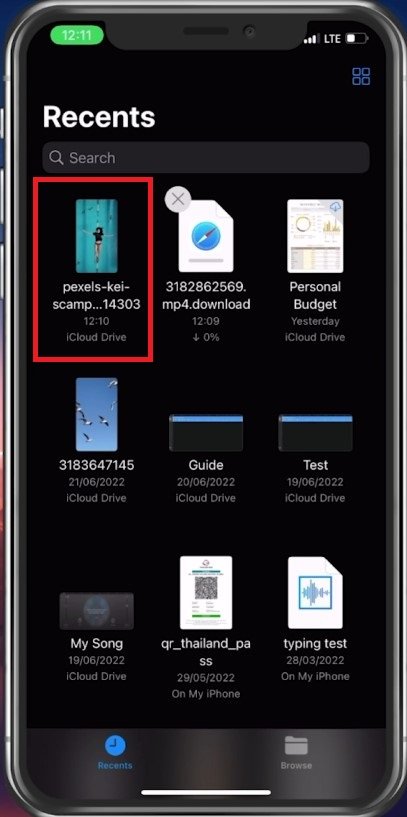 Apri l'app File per individuare il video salvato