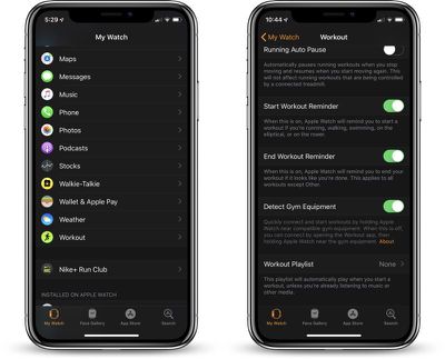 Il rilevamento automatico dell'allenamento è un'impostazione abilitata per impostazione predefinita dopo l'aggiornamento a watchOS 5, ma se non desideri la funzione, può essere disattivata utilizzando l'app Apple Watch sull'iPhone o sull'Apple Watch stesso.
