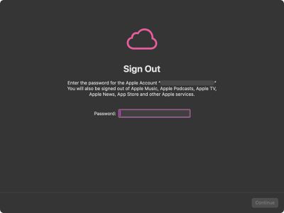- Inserisci la password del tuo account Apple per uscire, fai clic suContinuare, quindi fare clic suCancella tutti i contenuti e le impostazioninella richiesta di conferma.