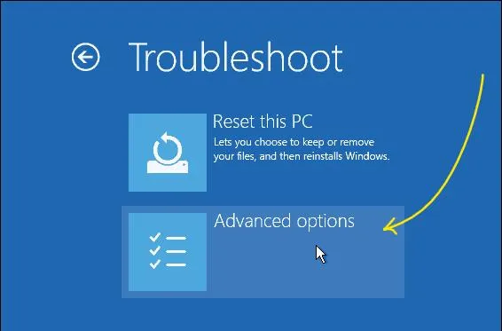 - Ora nella schermata di ripristino, fai clic su “Opzioni avanzate”