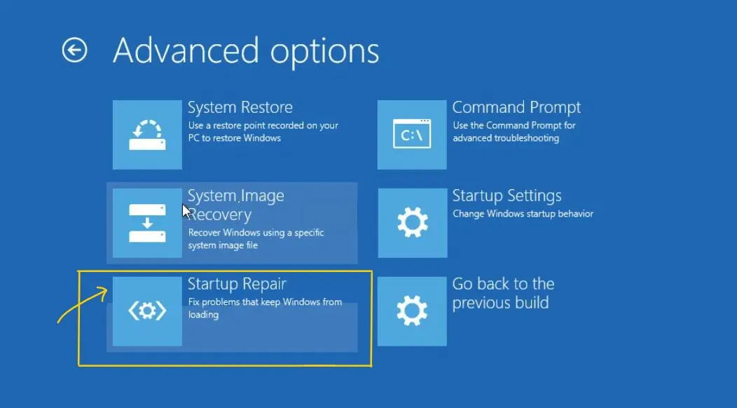 - In modalità di ripristino fai clic su "Risoluzione dei problemi", quindi vai su "Opzioni avanzate" e seleziona "Riparazione all'avvio".