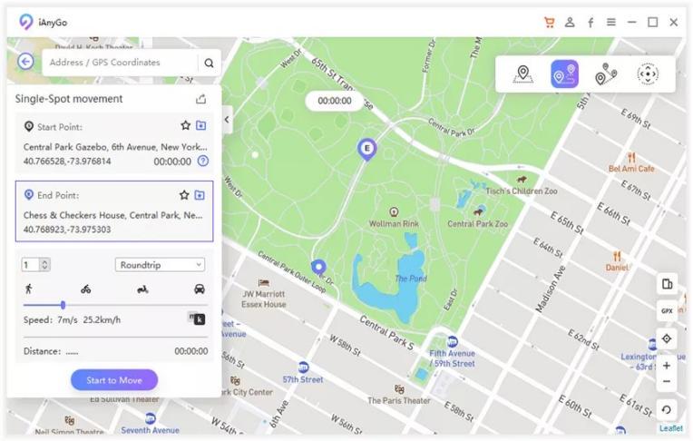 Passaggio 1:Seleziona l'interfaccia principale del programma iAnyGo e passa a Movimento a punto singolo. Fare clic sul pulsante Invio per procedere.