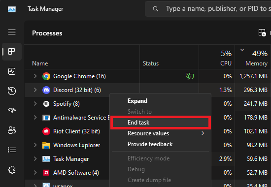 Se il passaggio precedente non risolve il problema, potrebbe essere necessario terminare manualmente i processi Discord: