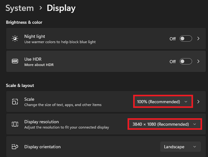 Nella sezione "Scala e layout", regola la scala e la risoluzione consigliate per goderti un'esperienza visiva ottimizzata durante il gioco.