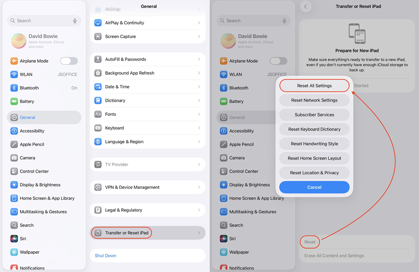 Passaggio 2.RubinettoRipristina > Ripristina tutte le impostazioniper riportare le impostazioni dell'iPad allo stato originale.