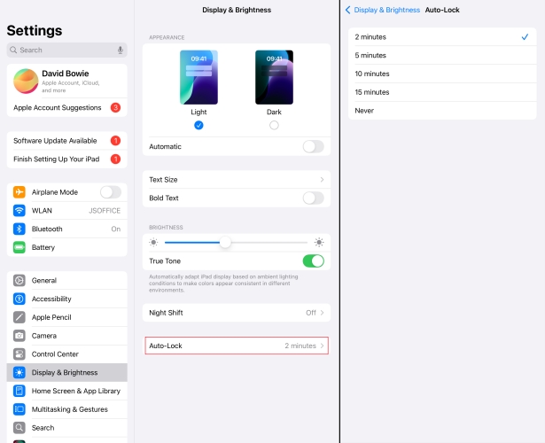 Ciò che consuma maggiormente la batteria del tuo iPad è lo schermo del display. Puoi regolare le impostazioni del display, come il blocco automatico e la modalità oscura, per risparmiare batteria sull'iPad.