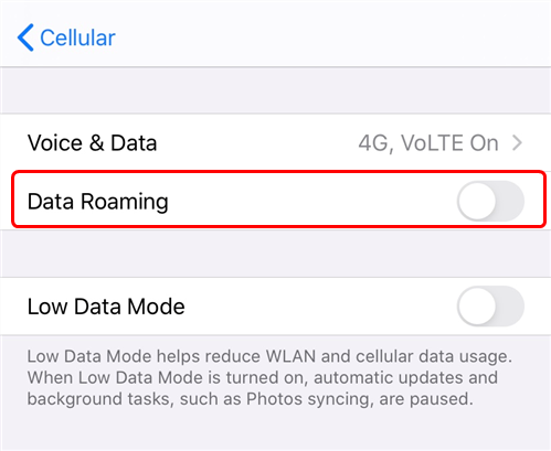 A volte l'abilitazione dei dati cellulari e delle opzioni di roaming può far sì che il tuo iPhone si connetta al tuo gestore di rete. Alcuni operatori richiedono inoltre di mantenere sempre attivi i dati cellulari.