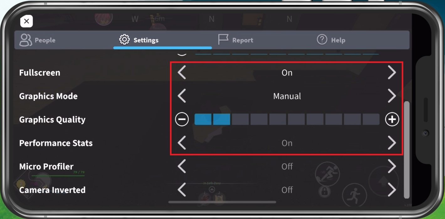 Prima di tutto, accedi alle tue impostazioni durante il gioco, il che avrà un impatto notevole sulle prestazioni e sulla qualità del tuo gameplay. Li imposterò per un dispositivo di fascia medio-bassa, poiché a sua volta ridurrà anche le distrazioni generate dal gioco e ti aiuterà a eseguire Project Slayers senza problemi su qualsiasi dispositivo mobile che desideri utilizzare.