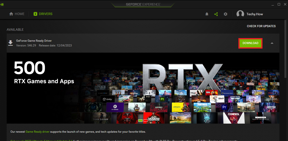 GeForce Experience > Driver > Scarica