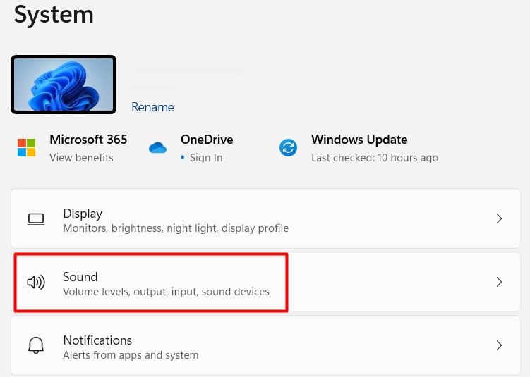 PASSO 5:Quando ilimpostazioni del suonoviene visualizzata la finestra, scorrere verso il basso fino asuonopannello di controlloe fare clic su di esso.