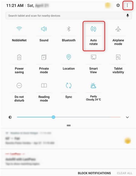 Passaggio 1. Tirare verso il basso dalla parte superiore dello schermo per aprirePannello delle impostazioni rapidee trova l'icona Rotazione automatica.