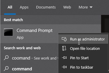 Passaggio 1 –Premi il pulsante Start e cerca CMD. Utilizzare l'opzione Esegui come amministratore per avviare il prompt dei comandi.