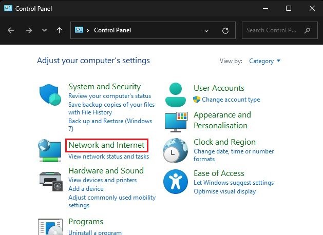 Infine, potresti dover modificare l'indirizzo del tuo server DNS per risolvere i problemi di download lento con la tua connessione. Apri il tuoPannello di controllocercandolo nella ricerca del menu Start. Assicurati di farloVisualizza per: Categoriae fare clic suRete e Internet.