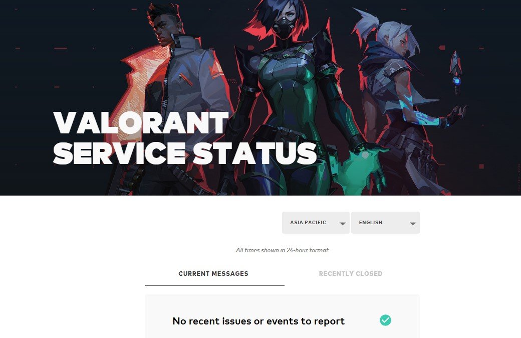 Quindi, assicurati che il fileServer di Riot Gamessono operativi nella tua regione Qui, scegli la tua posizione corrente per vedere se sono stati segnalati problemi o manutenzione del server.