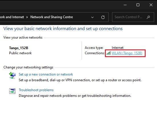 Successivamente, fare clic suCentro di rete e condivisione, e qui seleziona la tua connessione.