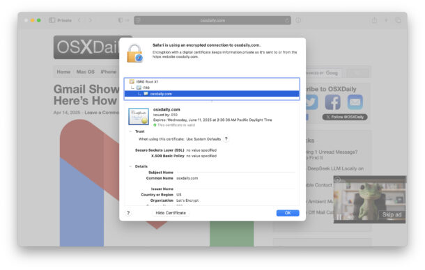 Se lavori nello sviluppo web, nella sicurezza delle informazioni, nel lavoro web, nell'hosting, nell'IT, nel supporto tecnico, nel devops, nell'amministrazione dei sistemi o in qualsiasi altro campo tecnico che si basa sul funzionamento dei certificati SSL e sulla loro verifica, potresti voler sapere come trovare e visualizzare i dettagli completi delle informazioni sul certificato SSL nelle versioni moderne di Safari per Mac, ed è ciò che ti mostreremo qui.