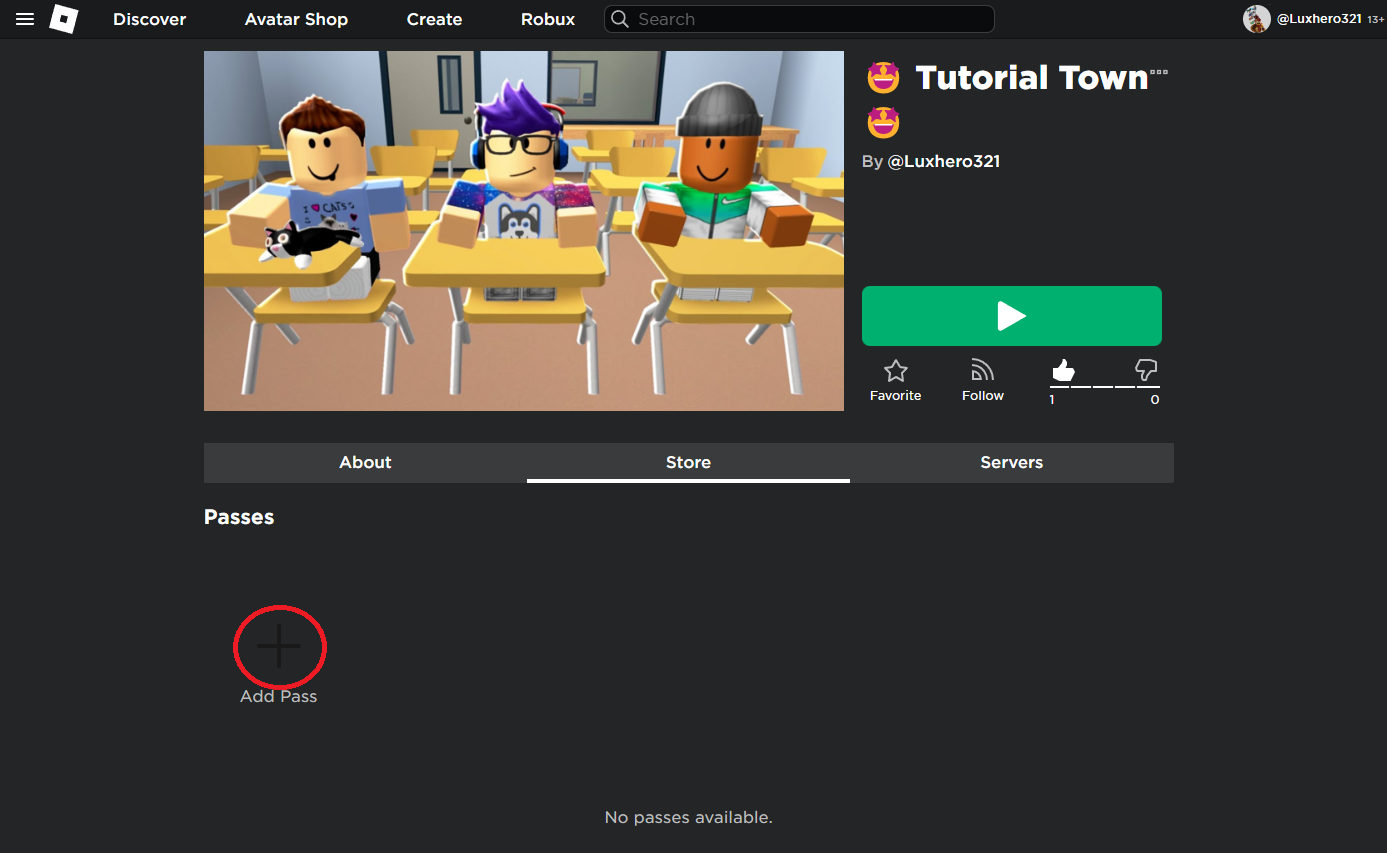 Assicurati di chiudere l'applicazione Roblox e accedere aRoblox.com. Dopo aver effettuato l'accesso con il tuo account, vai alle tue creazioni Roblox nella sezione del tuo profilo. Passa all'esperienza a cui desideri aggiungere un game pass. Nella sezione Negozio della tua esperienza, seleziona aggiungi un nuovo pass di gioco.
