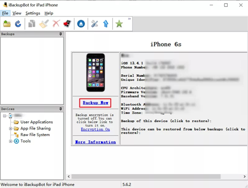 Come accennato, la rimozione di MDM con iBackupBot può causare la perdita di dati. Pertanto, prima di utilizzare iBackupBot per eliminare il profilo MDM, devi prima eseguire un backup del tuo dispositivo. Seguire i passaggi seguenti per avviare il processo di eliminazione del profilo MDM tramite iBackupBot.