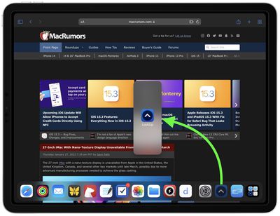Scorri a metà schermo dalla parte inferiore della finestra Slide Over, metti in pausa, quindi solleva il dito.