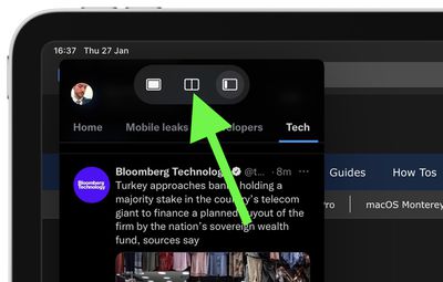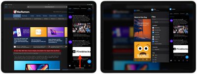 Per spostare l'app Slide Over, utilizza il pulsante Multitasking (tre punti) per trascinarlo a sinistra o a destra sull'app principale.
