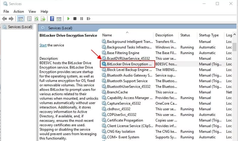 Se non desideri più cronometrare il tuo disco tramite il servizio BitLocker, puoi interromperlo nei Servizi.