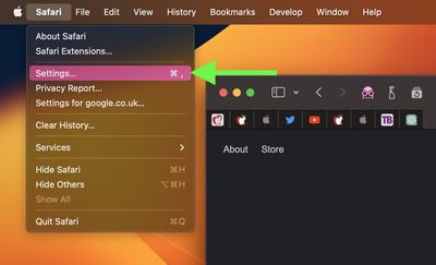 - In Safari, selezionaSafari -> Impostazioni…nella barra dei menu.