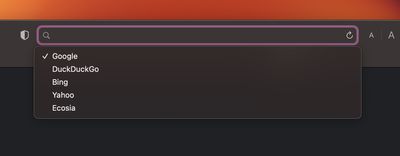 In Safari è effettivamente possibile passare rapidamente da un motore di ricerca all'altro dalla barra degli indirizzi. Premi semplicemente la barra spaziatrice prima di digitare qualsiasi parola e otterrai un menu a discesa in cui puoi selezionare tra le cinque opzioni del motore di ricerca del browser.