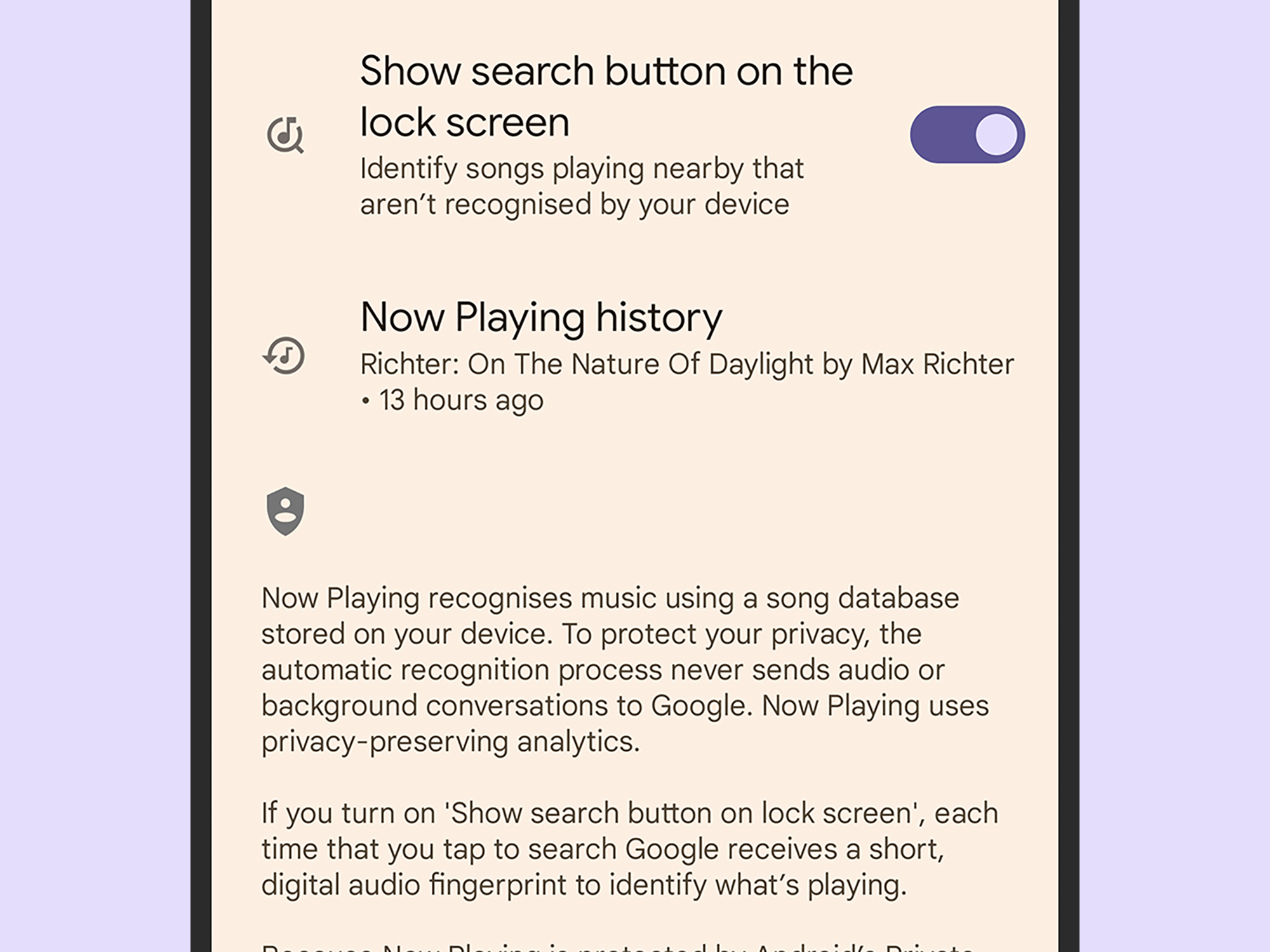 Puoi scegliere di avere il widget "In riproduzione" sulla schermata di blocco. Schermata: GooglePuoi personalizzare ciò che appare sulla schermata di blocco in altri modi aprendoImpostazionie toccandoDisplay, seguito daSchermata di blocco. ILPrivacyl'opzione ti consente di mostrare o nascondere contenuti sensibili nelle notifiche, man mano che arrivano: ancora una volta, Google non dice cosa significa "sensibile", ma include la prima riga di messaggi ed email in arrivo.