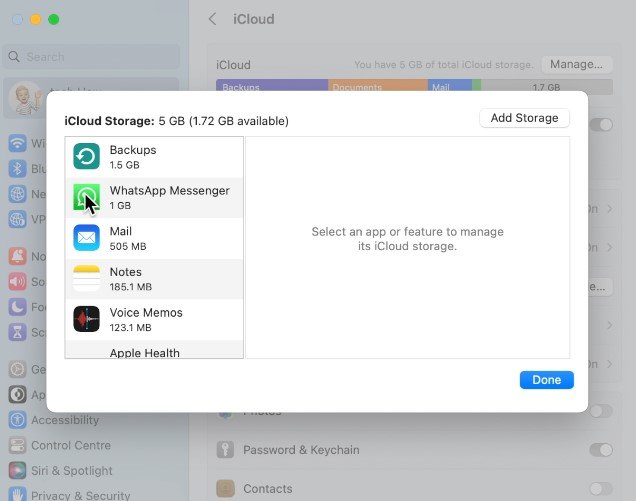 Facendo clic suManeggio, puoi vedere la quantità di spazio di archiviazione utilizzata da ciascuna applicazione nel tuo iCloud.
