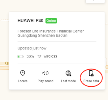 Huawei e altre marche di dispositivi mobili dispongono della funzione Trova il mio telefono. Ciò consente ai clienti di rintracciare i loro telefoni rubati o smarriti utilizzando il GPS. Tuttavia, Trova il mio telefono può aiutare a trovare e cancellare un telefono smarrito.