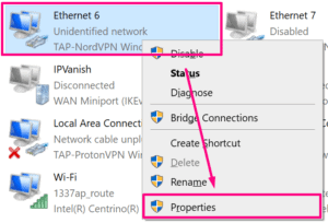 - Dovresti vedereAdattatore Windows TAP-NordVPNda qualche parte nel tuoConnessioni di retefinestra. Il mio appariva sotto il nome “Ethernet6.”