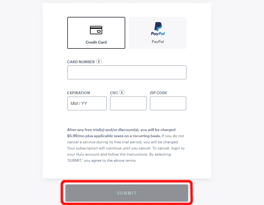 - Fai clic su "Invia" e voilà! Sei riuscito a registrarti su Hulu e il tuo account ora dovrebbe essere attivo.