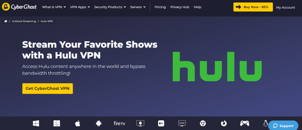 CyberGhost è un'altra fantastica scelta per Hulu.