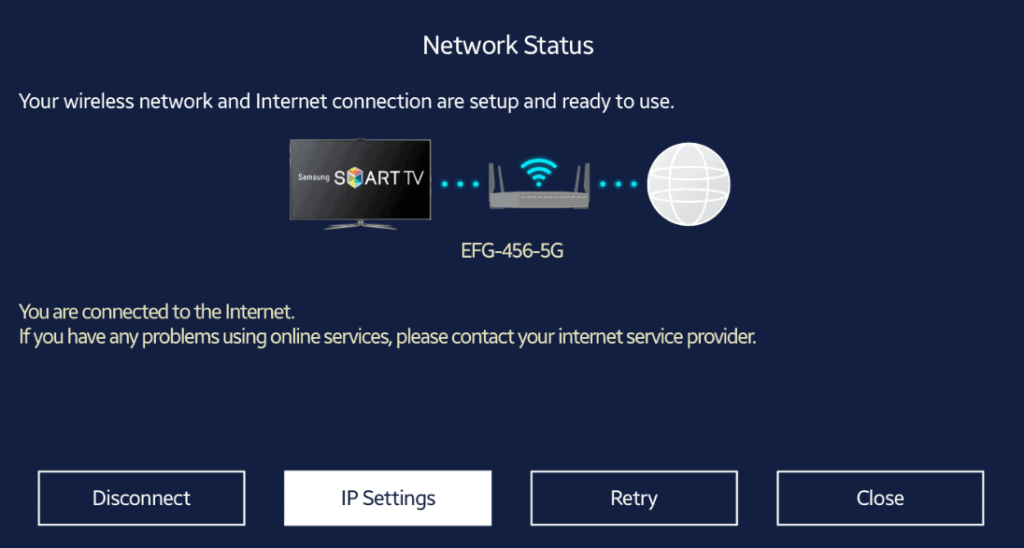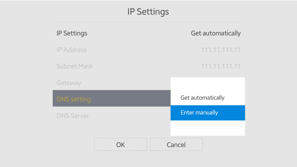- Sulla TV, individua il fileimpostazioni IP di retemenu.