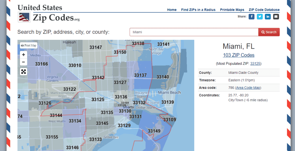 Basta digitare il nome di una città degli Stati Uniti nella casella di ricerca e selezionarne uno qualsiasiNumeri a 5 cifre.
