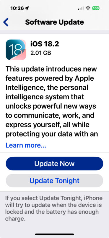 Apple ha rilasciato iOS 18.2 per tutti gli utenti iPhone e iPadOS 18.2 per tutti gli utenti iPad. I nuovi aggiornamenti software si concentrano principalmente sull’introduzione delle nuove funzionalità AI di Apple Intelligence sui dispositivi compatibili, incluso il supporto per l’integrazione di ChatGPT con Siri, la generazione di immagini Image Playground, insieme a nuove funzionalità AI più piccole in varie app e nel sistema operativo.
