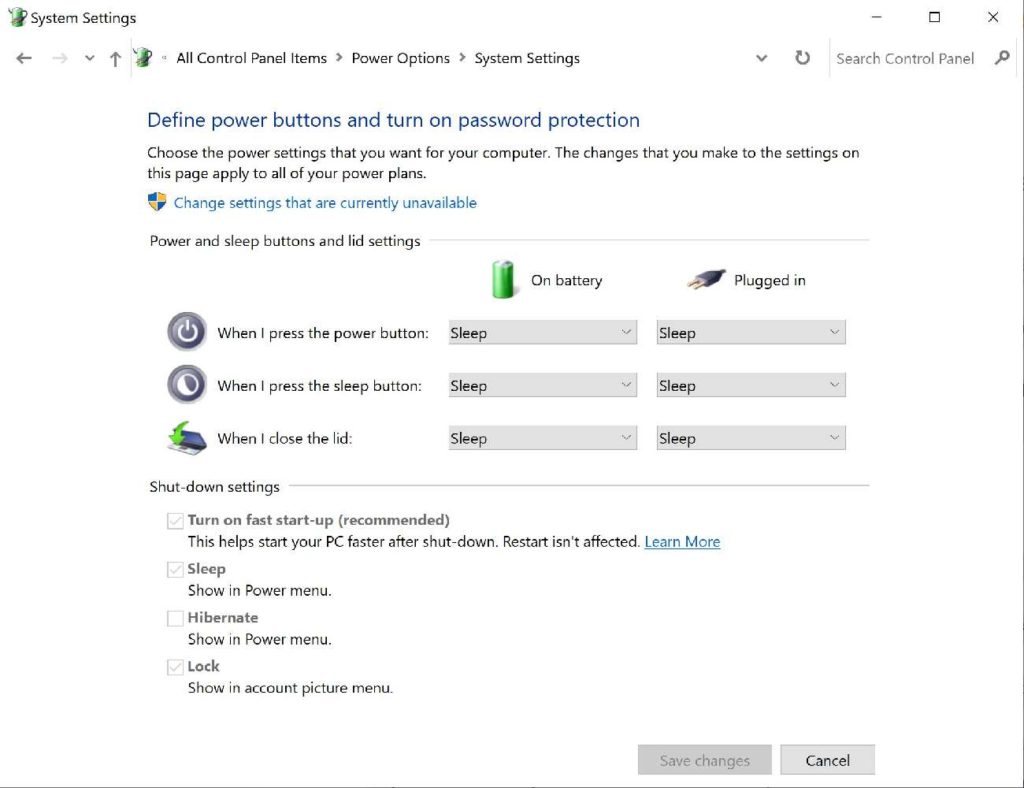 Per salvare le modifiche, vai in fondo al fileImpostazionifinestra e fare clic su Salva modifiche. Se preferisci che il tuo laptop rimanga acceso quando chiudi il coperchio, seleziona semplicemente "Non fare nulla"dal menu.