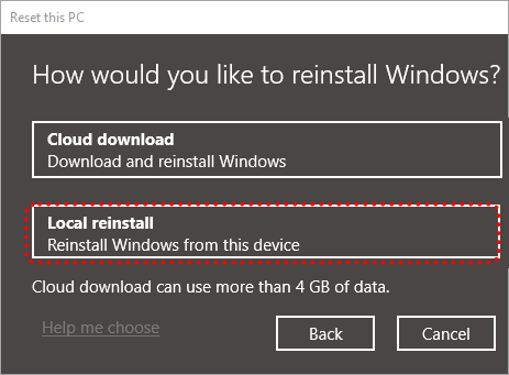 Passaggio 4: Successivamente, fai clic su "Reinstallazione locale" nella nuova interfaccia.