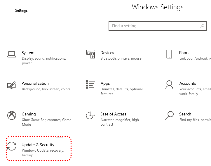 Passaggio 1: premi "Windows + I" per aprire le Impostazioni di Windows, quindi fai clic su "Aggiornamento e sicurezza".