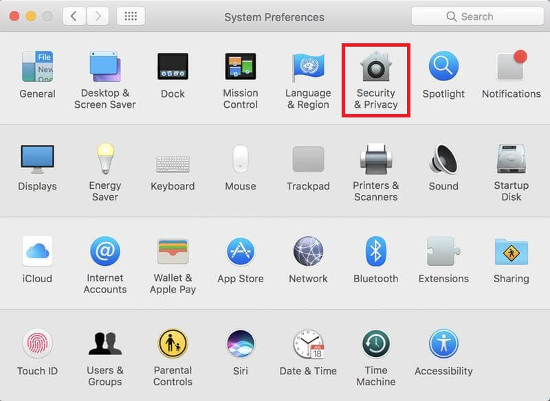 Preferenze di sistema. SelezionareSicurezza e privacydall'elenco dei menu.