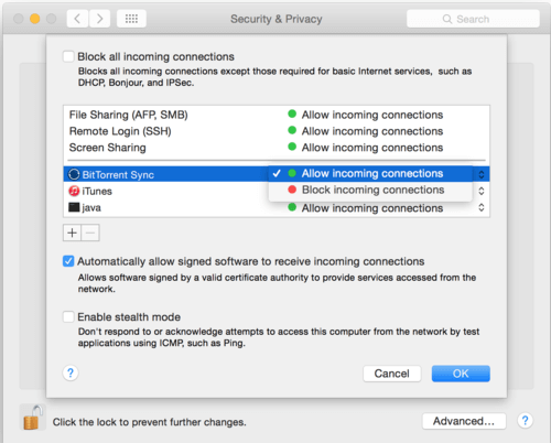 Consenti automaticamente al software integrato di ricevere connessioni in entrata. Seleziona la casella di controllo accanto a