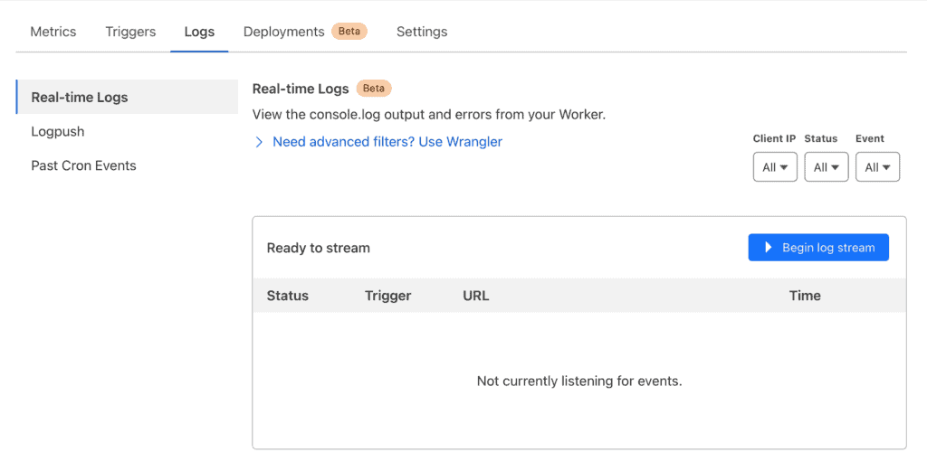 - Fare clic suInizia il flusso di registroe attendi che i log mostrino le richieste dei lavoratori in tempo reale.