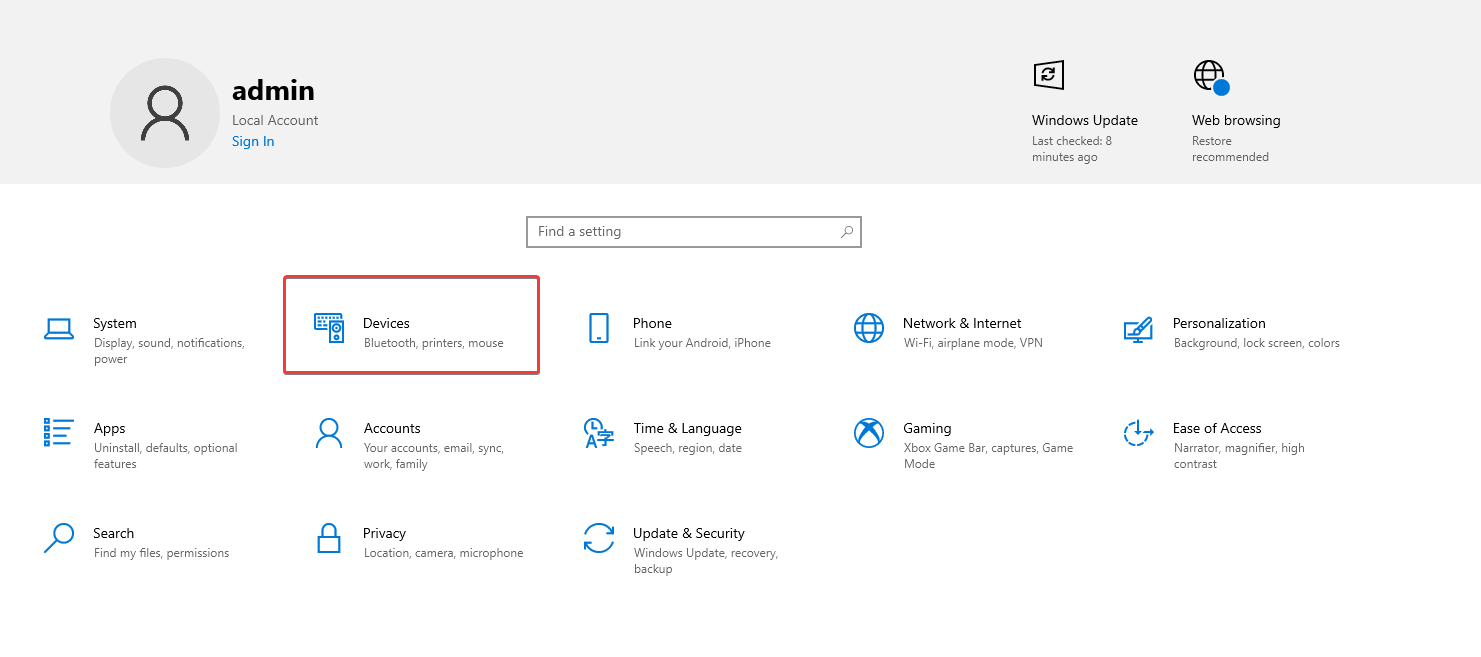 Passaggio 2– Nelle impostazioni, trova Dispositivi.